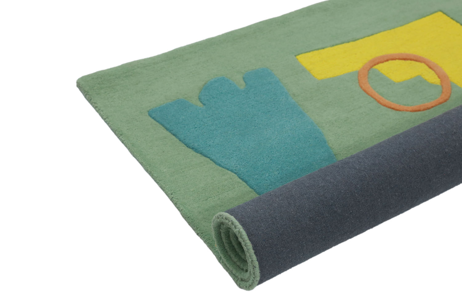 A fun rippled collection of playful rugs for children to bring out lighthearted mood to their interior spaces. Confident bold colours that will transform everyday kids designs into stanout statement rugs. Whimsical kids rugs is a colour blocked rug paired with bold, primary brights and conflicting mid toness in graphic wriggle combination.The rug comes with anti skid cotton canvas backing making it super safe to jump and stomp on.